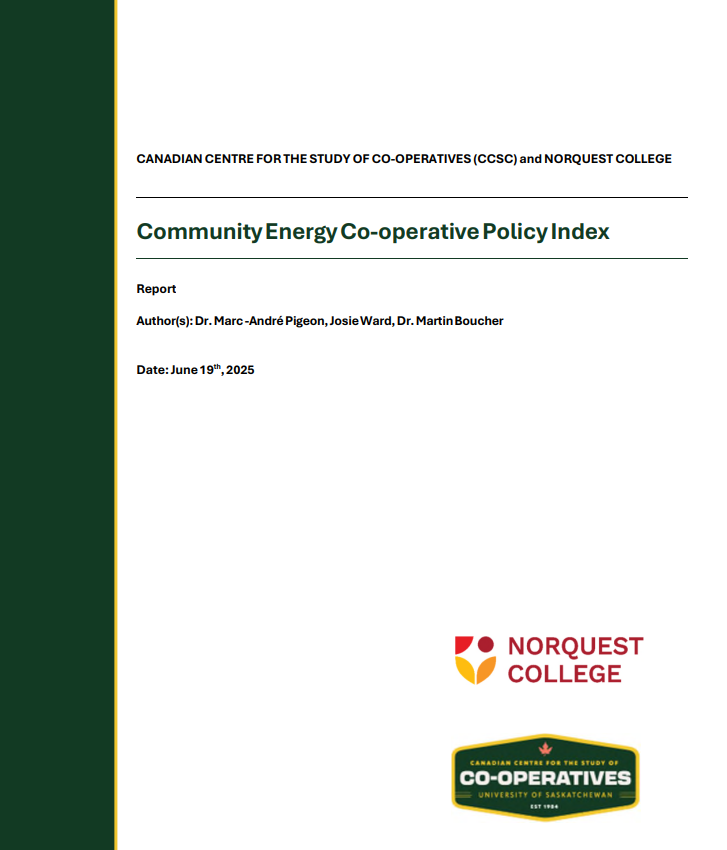 This study by Dr. Marc-André Pigeon, Josie Ward, and Dr. Martin Boucher developed a comprehensive policy index to measure the receptiveness of jurisdictions to community energy production, with a particular focus on renewable energy co-operatives (RECs). This index calculated and ranked Canada’s ten provinces based on their policy support for RECs, integrating both qualitative and quantitative metrics to assess enabling (or disabling) environments for RECs in Canada.